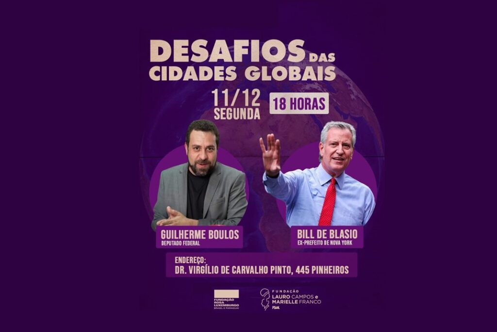 Guilherme Boulos, deputado federal, e Bill de Blasio, ex-prefeito de Nova York, conversarão sobre os desafios de gerir grandes metrópoles.