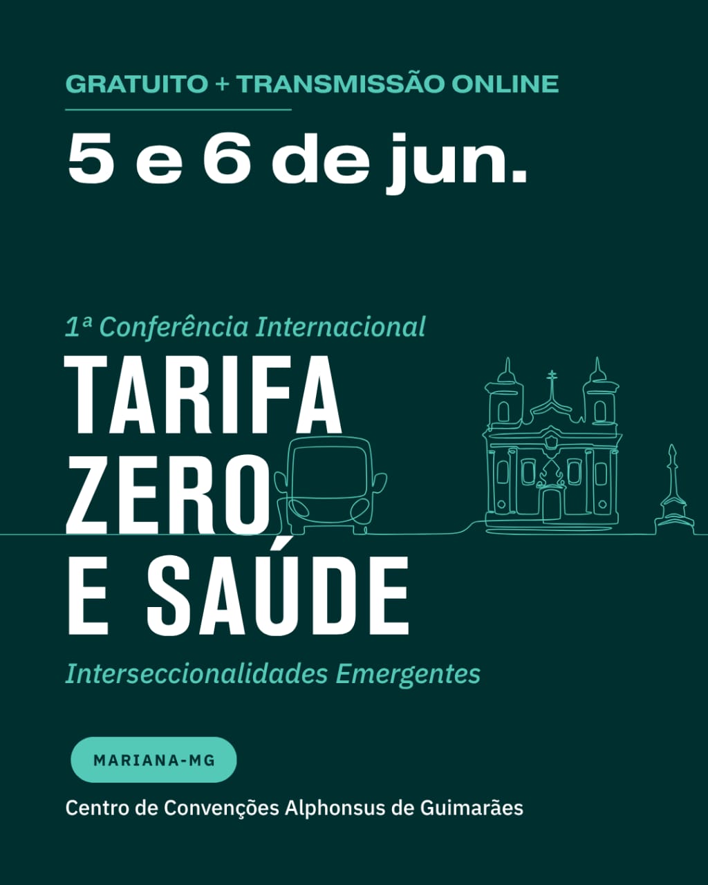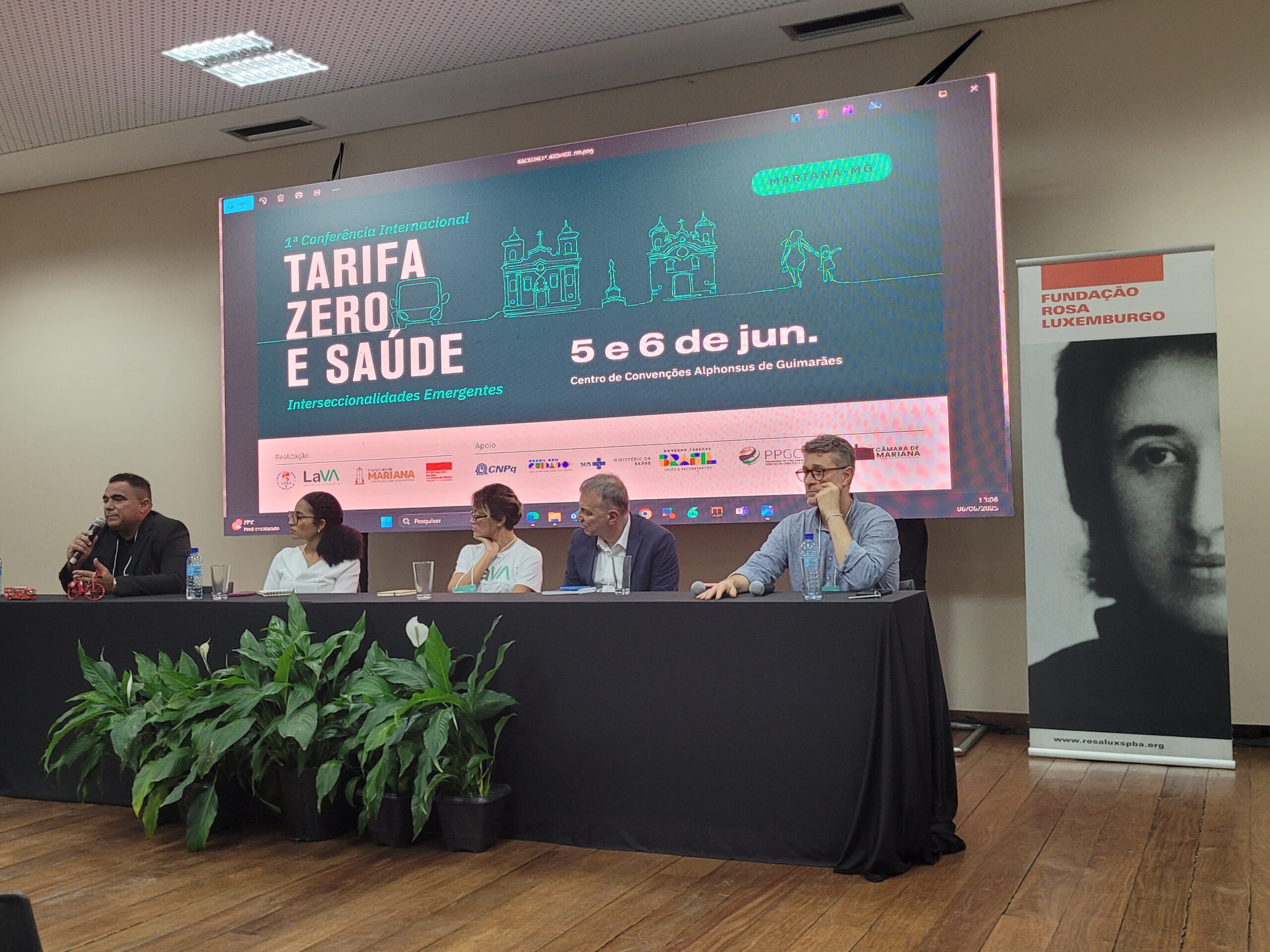 A primeira Conferência Internacional Tarifa Zero e Saúde: Interseccionalidades Emergentes, realizada nos dias 5 e 6 de junho de 2025, reuniu pesquisadores e pesquisadoras, movimentos sociais, representantes do poder público e da sociedade civil em debates técnicos que reforçam a relação entre políticas públicas de Tarifa Zero e Saúde Pública. O encontro aconteceu em Mariana (MG) e foi organizado por Laboratório de Vida Ativa da Universidade do Estado do Rio de Janeiro, Fundação Rosa Luxemburgo e Prefeitura de Mariana (MG), com apoio do Conselho Nacional de Desenvolvimento Científico e Tecnológico (CNPq), Ministério da Saúde e Prefeitura de Mariana/MG.