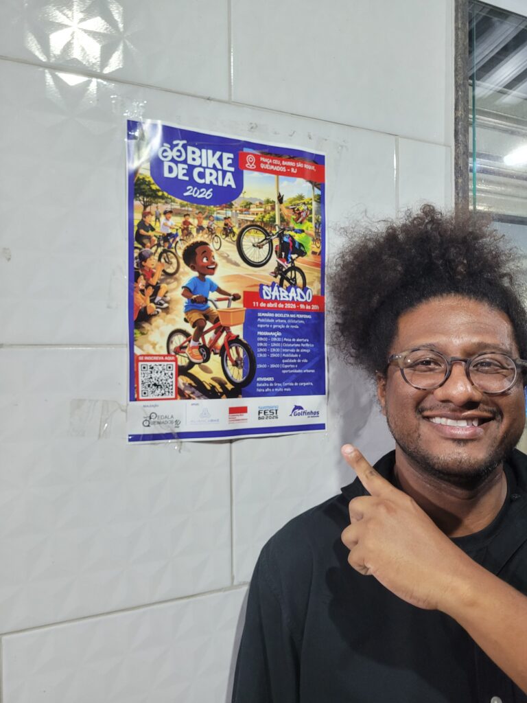 O Seminário Bicicletas nas Periferias 2026 reuniu moradores, empreendedoras locais, representantes de diferentes organizações da sociedade civil e ciclistas em uma sequência de mais de dez horas de atividades no bairro São Roque, em Queimados (RJ), na Baixada Fluminense, em 11 de abril. Aberto e gratuito, o evento foi realizado pela organização local Pedala Queimados, com apoio da Aliança Bike e da Fundação Rosa Luxemburgo e curadoria do Instituto de Planejamento Estratégico de Transportes e Turismo (Planett). É o primeiro de uma série de encontros temáticos pensados para discutir o papel e a importância da bicicleta na mobilidade urbana. Já está prevista uma segunda edição em São Miguel Paulista, na Zona Leste de São Paulo, ainda sem data definida.