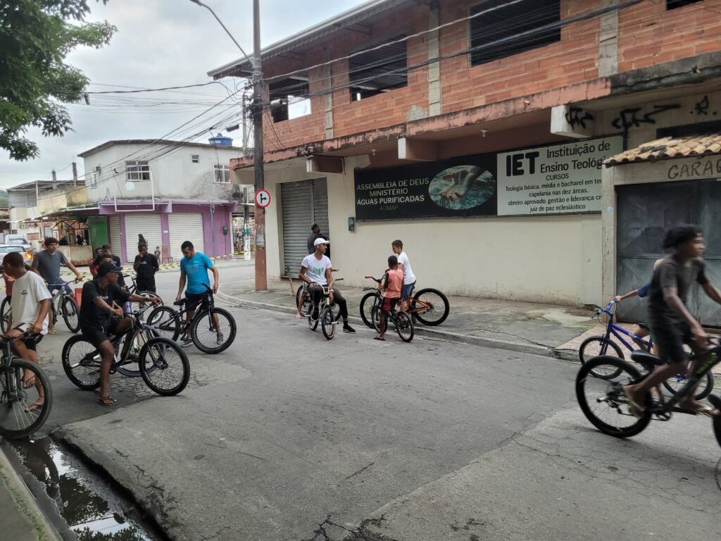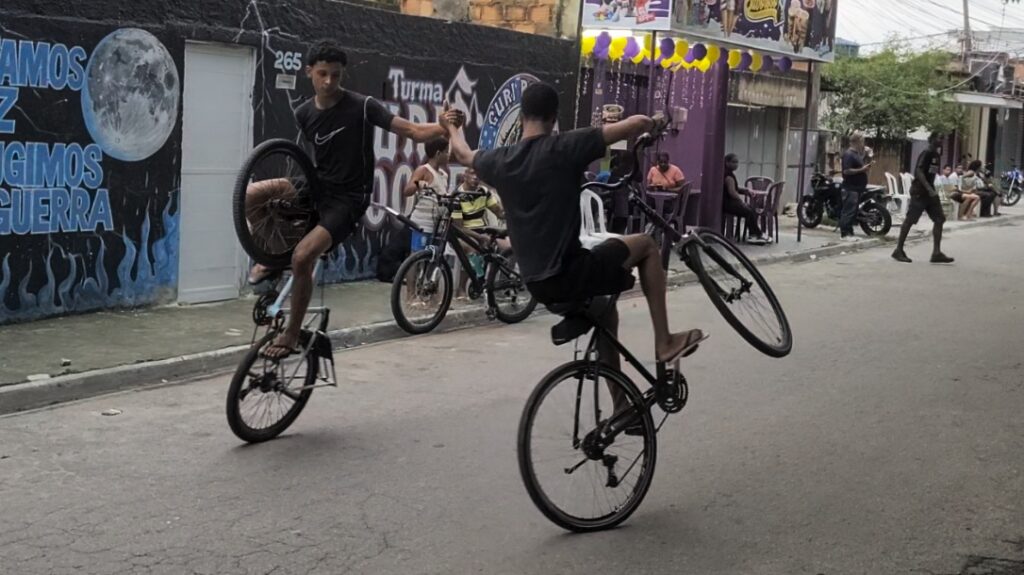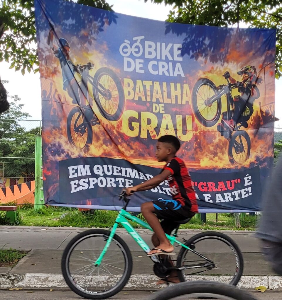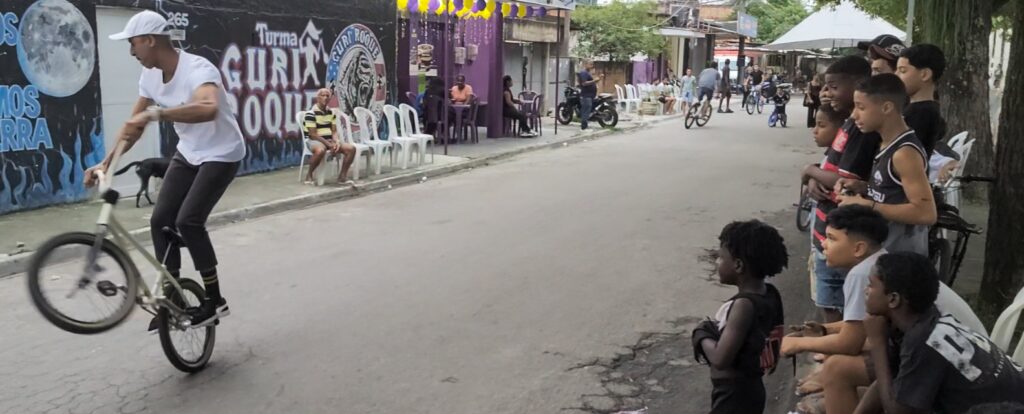 O encontro fez parte da edição de 2026 do Festival Bike de Cria, iniciativa do Pedala Queimados para promover e celebrar o Grau como esporte. A prática, que consiste em empinar e equilibrar a bicicleta em uma roda só para fazer manobras e demonstrações, é comum nas periferias brasileiras. Em Queimados (RJ), a juventude tem assumido protagonismo, pressionando pela aprovação de uma lei municipal para formalizar a prática como esporte.
